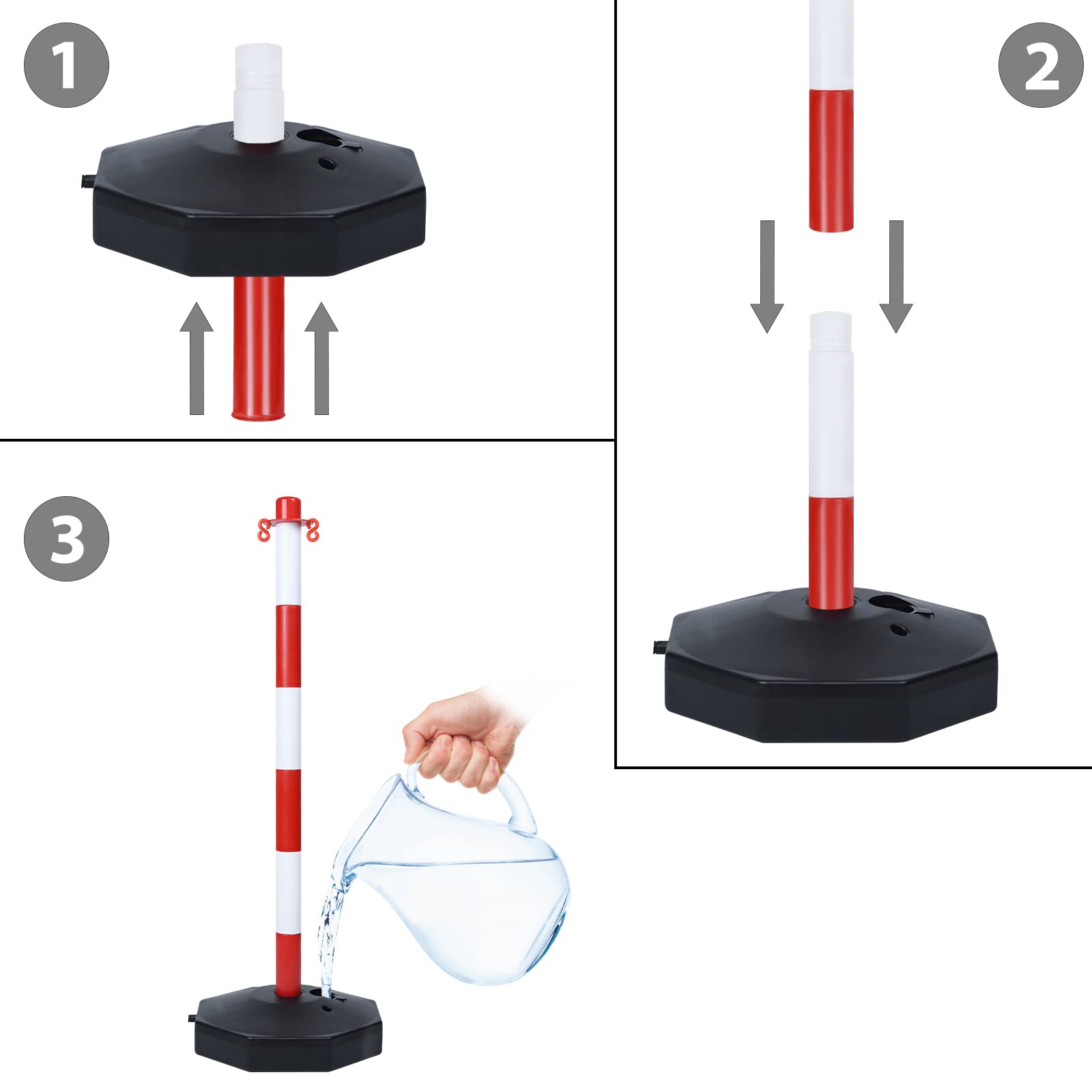 ¡Delimita espacios con seguridad! Este set incluye 4 postes de plástico con cadenas de 1.4m. Bases rellenables con agua/arena para mayor estabilidad. Altura ajustable (hasta 82cm) y resistente a la intemperie. Ideal para parking, eventos o obras. ¿Plus? Colores llamativos para máxima visibilidad. ¡Montaje en minutos! Incluye ganchos y manual.