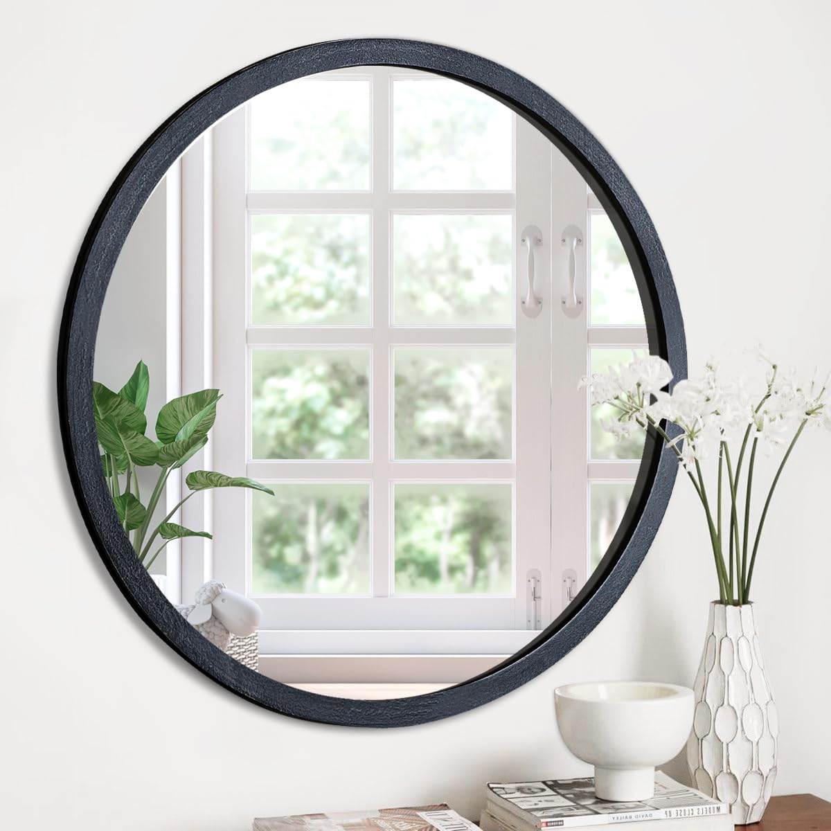 ¡Añade estilo a cualquier pared! Este espejo circular de 60 cm tiene marco de madera maciza y viene en varios colores (blanco, negro, gris). Ideal para baños, salas o entradas. Reflejo claro sin distorsión y fácil de instalar. ¡Decoración funcional y elegante!